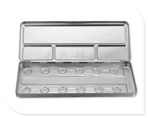 此款化妝品工具鐵盒材質(zhì)為馬口鐵制成,具有密封性和防潮性等特點(diǎn),鐵盒印刷為單面專色印刷,由于化妝品容易受潮,鐵盒內(nèi)過都涂抹上一層防水的透明油料,還能防止鐵盒的銹蝕。