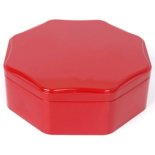 這款多邊形糖果馬口鐵鐵罐的尺寸為250*250*89mm,為了順應多樣化的市場包裝需求,這款糖果馬口鐵罐可做成心形、正方形、橢圓形、車形、書本形等異形造型